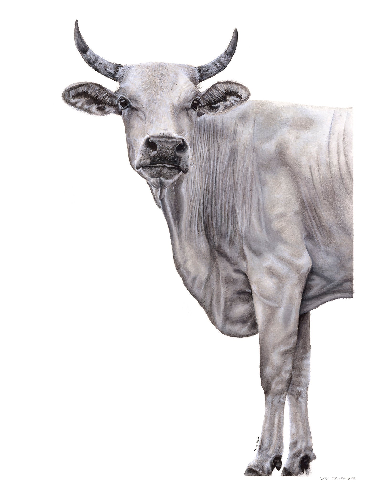 - Witness the captivating elegance of "Claire". Set against a white backdrop, her alert demeanor adds a dynamic energy to the composition, as she stands with an air of attentive grace. The monochromatic scheme highlights the subtle nuances of her form and expression, creating a serene yet striking portrayal. This artwork celebrates the beauty of simplicity and the nuanced elegance of the animal, inviting viewers to appreciate the quiet power and delicate presence of Claire in her pure, unadorned environment.
