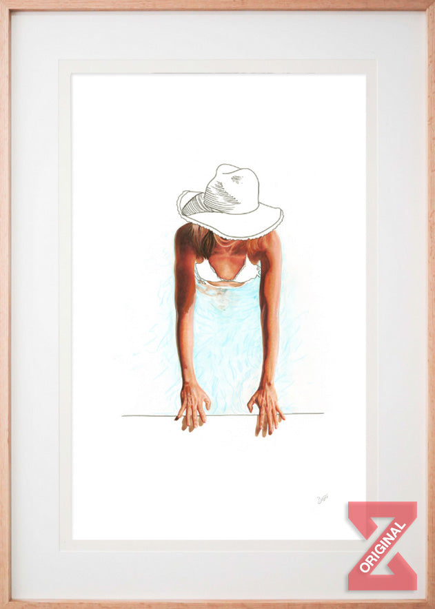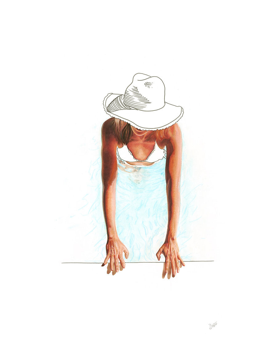Immerse in the allure of "Poolside Aura" as an elegant muse, adorned with a resplendent hat, embraces the languid depths of the pool. Holiday vibes ignite, capturing the essence of blissful indulgence and captivating allure.