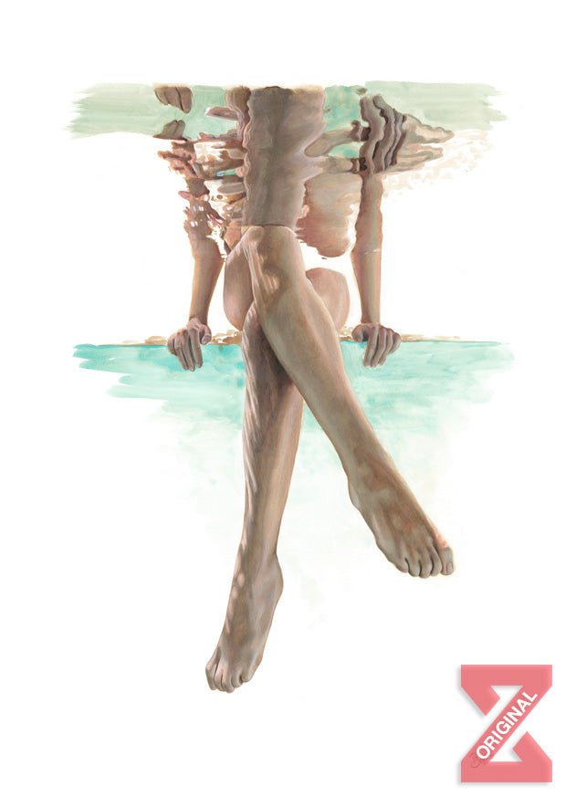 Dive into the enchanting depths of "Poolside Whispers" where elegant legs clad in a pristine white bikini immerse in crystalline waters. Holiday vibes resonate as whispers of sun-kissed bliss caress the air.