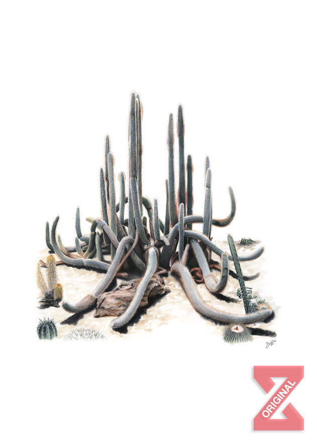 Bridging the divide between the rugged Baja desert and the vast, azure expanse of the Pacific, "Pulpo Antorcha de Plata" is a captivating work of art that celebrates the unique and otherworldly beauty of the octopus cactus.