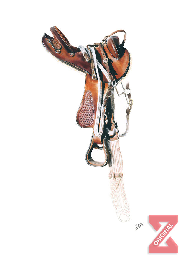 Step back in time and into the rugged world of the Vaquero with this stunning artwork. The detailed depiction of a saddle tells the tales of companionship and adventure, capturing the essence of a bygone era. Each brushstroke and line work together to create a sense of nostalgia and raw beauty, bringing to life the timeless spirit of the American cowboy. This piece is a tribute to the traditions and craftsmanship of the Vaquero, an iconic figure in the history of the American West. Display this artwork proudly in your home or office as a symbol of the enduring bond between man and horse.